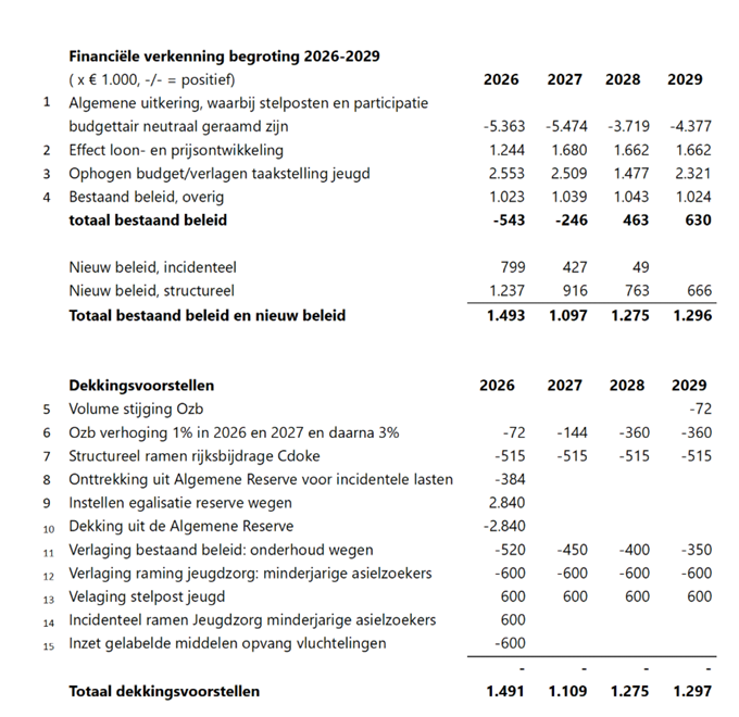 In het dekkingsplan bij deze begroting wordt voor de jaren 2026 en 2027 een extra verhoging van 1% voorgesteld en voor 2028 3% om nieuw beleid en autonome ontwikkelingen in de meerjarenbegroting te kunnen bekostigen.