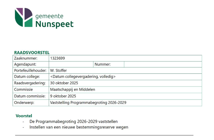 Programmabegroting 2026-2029 (via nunspeet.begrotingonline.nl) Boekwerk bijlagen begroting 2026-2029 (via nunspeet.begrotingonline.nl) Bijstellingsbrief Programmabegroting 2026-2029